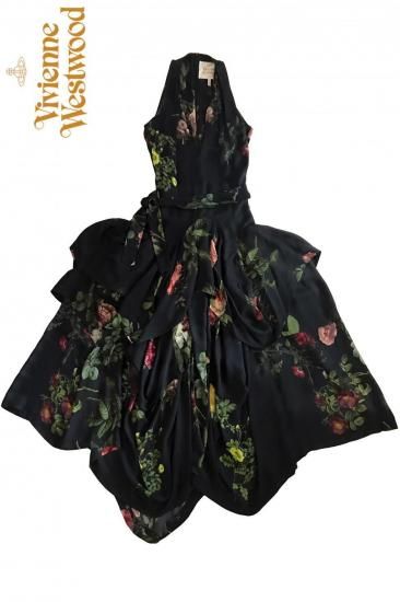 ヴィヴィアンらしい薔薇🌹の花のプリントがドレス全体に散りばめられた美しいシルク生地を贅沢に使ったエレガントなデザインのロングドレス✨👗✨